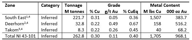 Historical mineral resources have been estimated for the Southeast, Deerhorn, and Takom deposits. They are summarized in Table 1 below.