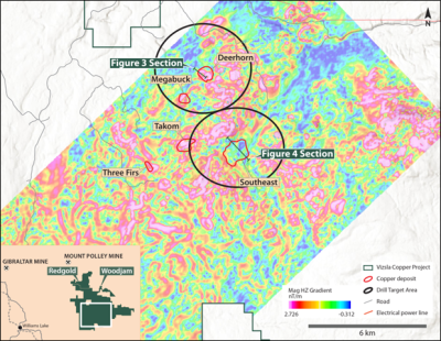 The second group of targets is comprised of new exploration areas not immediately adjacent to known deposits. Targets here are largely based on new geophysical survey results gathered from recent high-definition heli-borne magnetic and Z-Axis Tipper Electromagnetic (ZTEM) surveys completed by Vizsla Copper, which have generated numerous new target areas for evaluation.