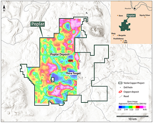 Vancouver, British Columbia, June 24th, 2025 – Vizsla Copper Corp. (TSXV: VCU, OTCQB: VCUFF, FRANKFURT: 97E0) (“Vizsla Copper” or the “Company”) is pleased to report that drilling has commenced at the Poplar Project, central BC. Drilling is focused on testing the copper-molybdenum mineralization potential of the porphyry-related Thira target.