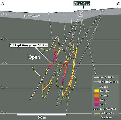 - The intersection extends higher grade gold mineralization at Deerhorn to the south and is wide open for further expansion in that direction