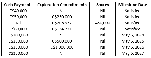 Table 1 – Amended Schedule for Megaton Option Agreement