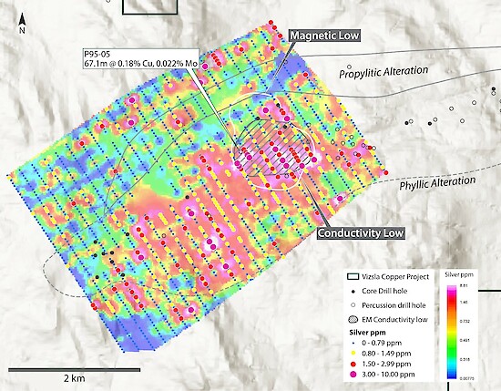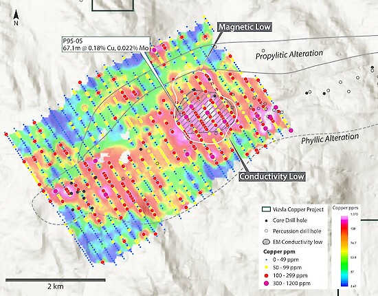- Copper, molybdenum and silver soil geochemical anomalies are coincident with geological and airborne geophysical targets