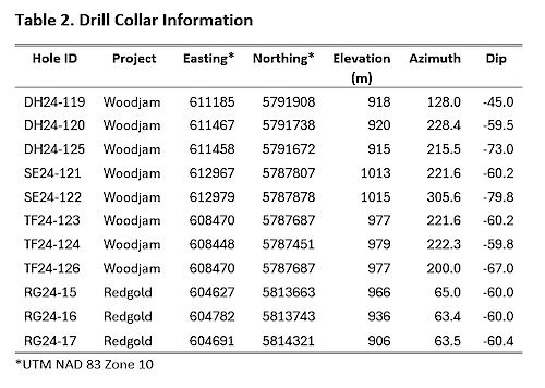 Figure 8. Map of the Redgold Project showing the location of the 2024 drill holes with select historical drill results3. Intervals are downhole length-weighted. True widths are unknown.