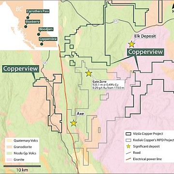In June 2023, Vizsla Copper acquired a 100% interest in the 37,466-hectare Copperview Project, located in the Aspen Grove area of south-central BC.